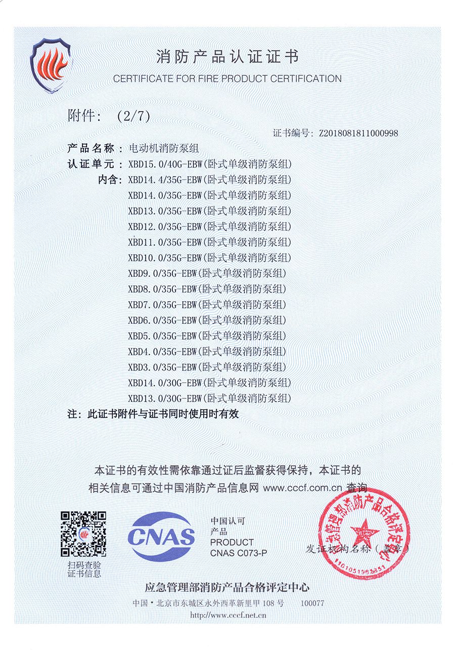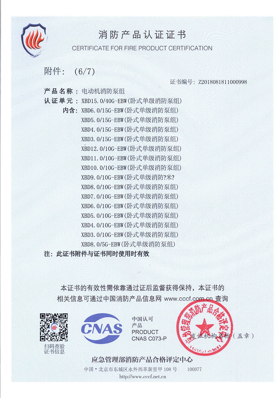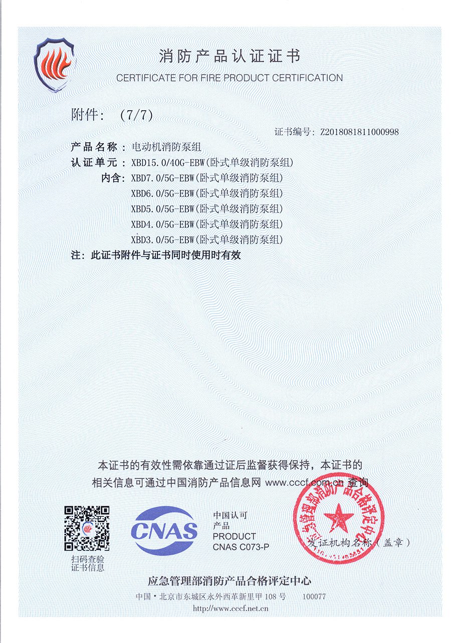 臥式單級(jí)EBW-消防產(chǎn)品認(rèn)證證書