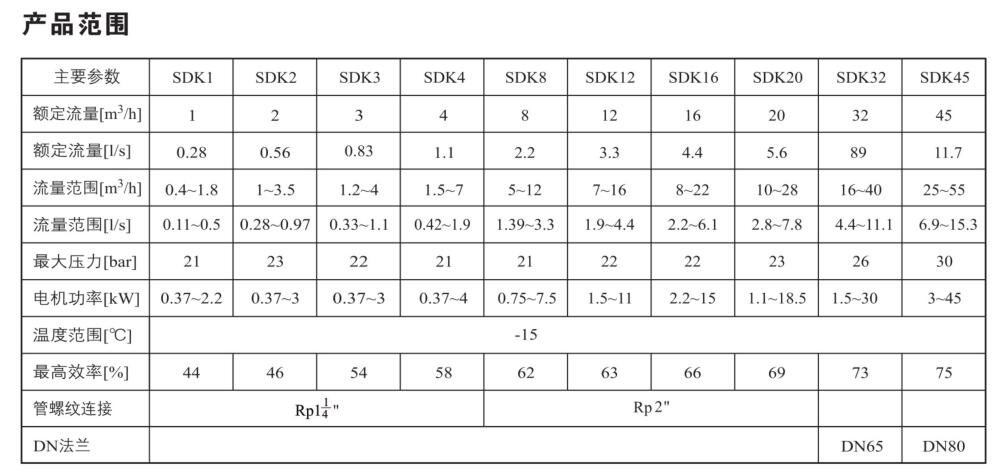 SDK/SDKT為配用標準電機的非自吸立式多級離心泵,電機軸和泵軸用聯(lián)軸器直接聯(lián)接的結(jié)構(gòu)。為滿