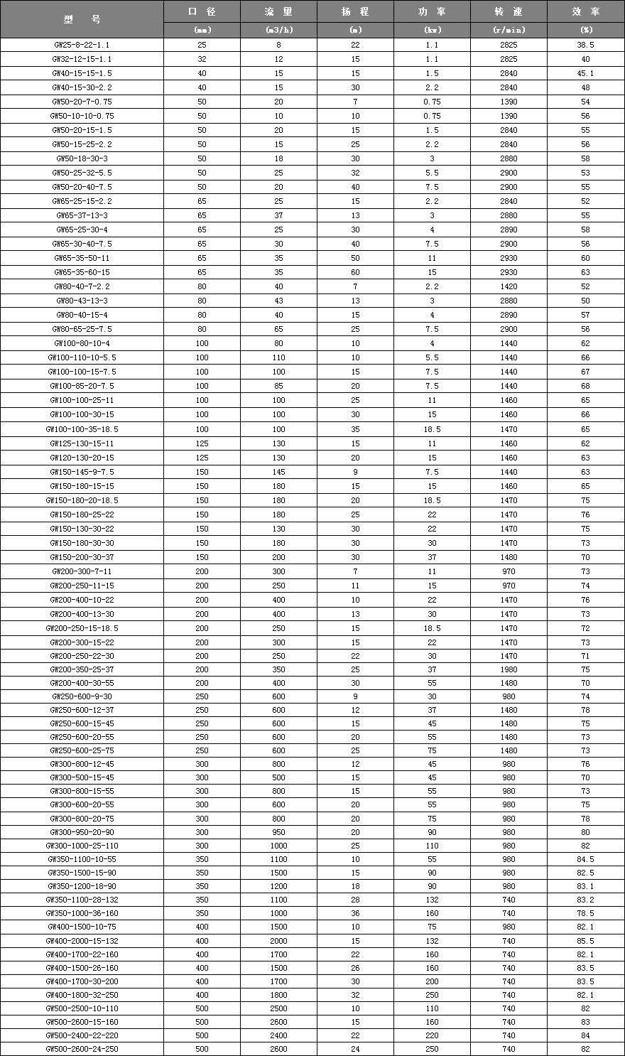 | | |_______________ 額定流量Q(m3/h)