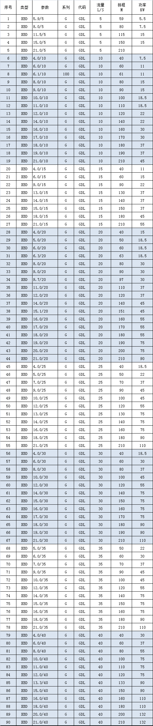 3、工作壓力:XBD型泵:≤2.5MPa,即系統壓力+揚程≤2.5MPa,XBD(I)型泵:≤2.0MPa。