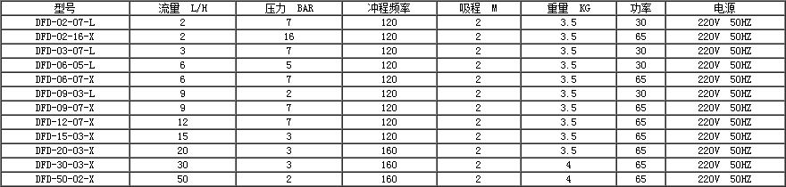 上海二泵電磁隔膜泵計量泵的額定排量在1-15L/H范圍內,對應的工作壓力上限為10-3BAR。泵的出口流量可根據頻率按鈕或沖程長度調節螺釘來調節。LED發光二極管指示運行狀態。按R/S鍵起停計量泵。 按上下鍵調節計量泵的工作頻率及設定時時 發光管的閃爍頻率與計量泵的工作頻率一致。